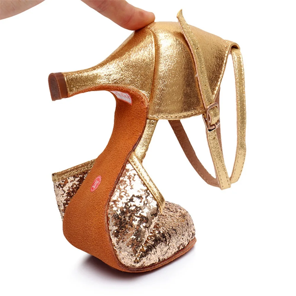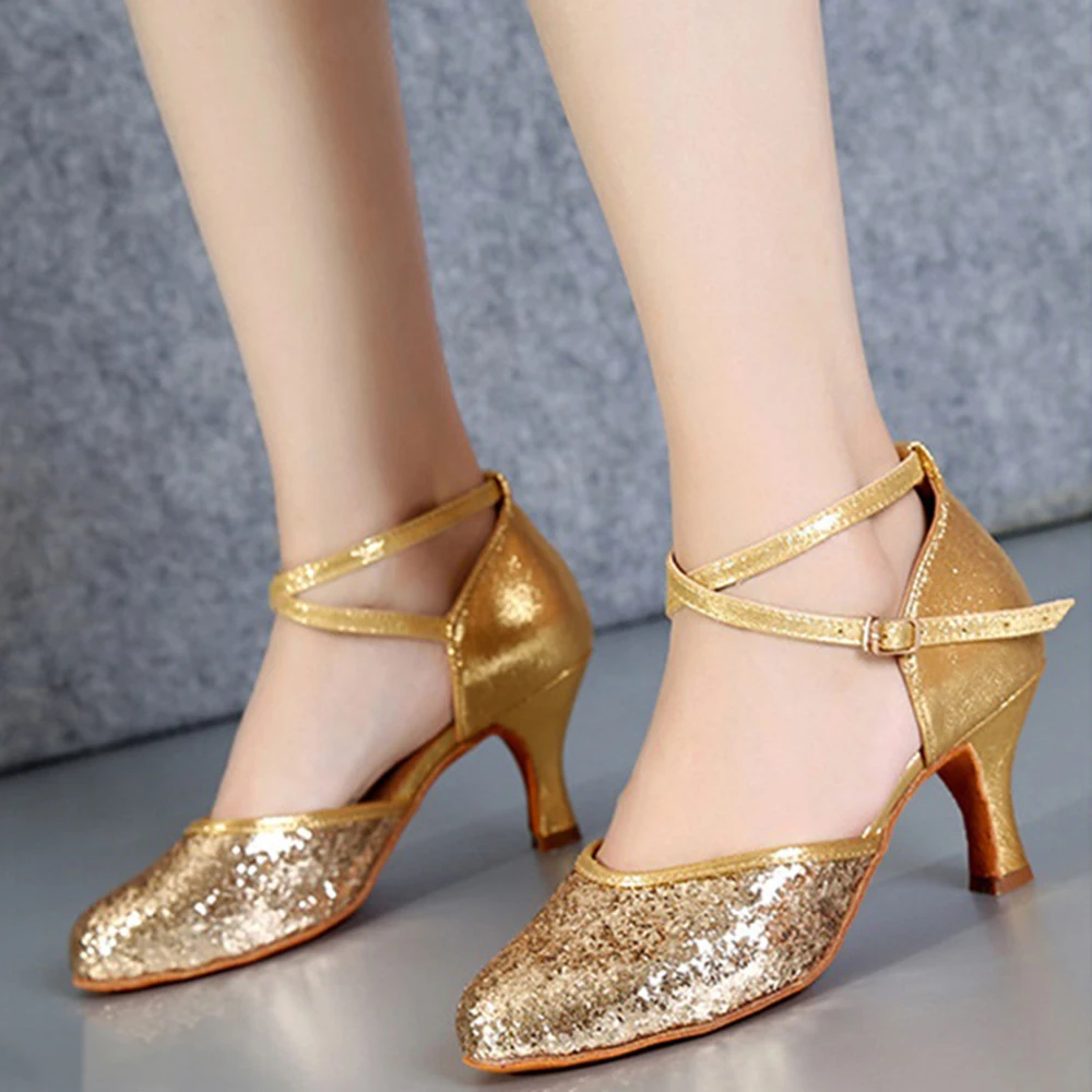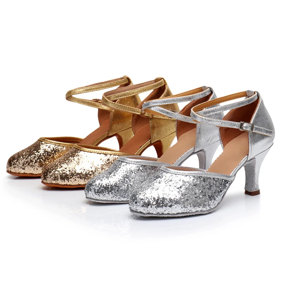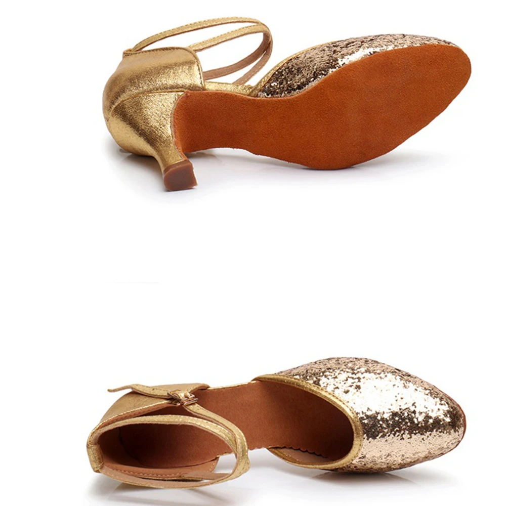 Ladies Sequined Latin Dance Shoes Soft Soles Salsa Training Dance Shoes Indoor Stage Performance Shoes